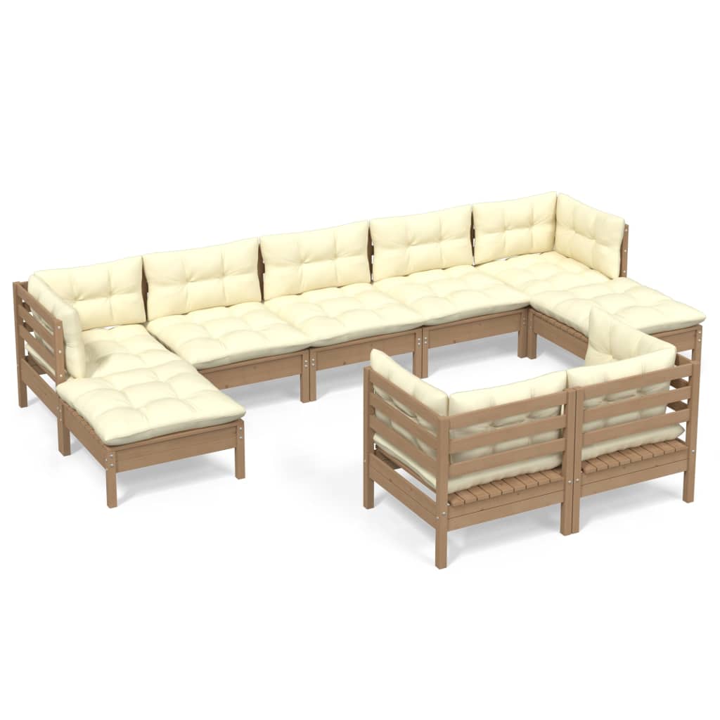 9 Piece Pinewood Garden Lounge Set with Cushions