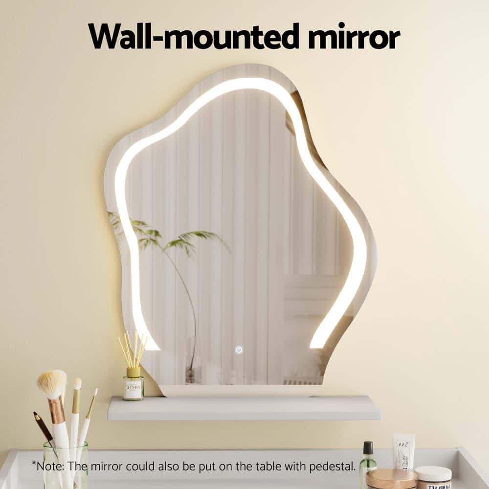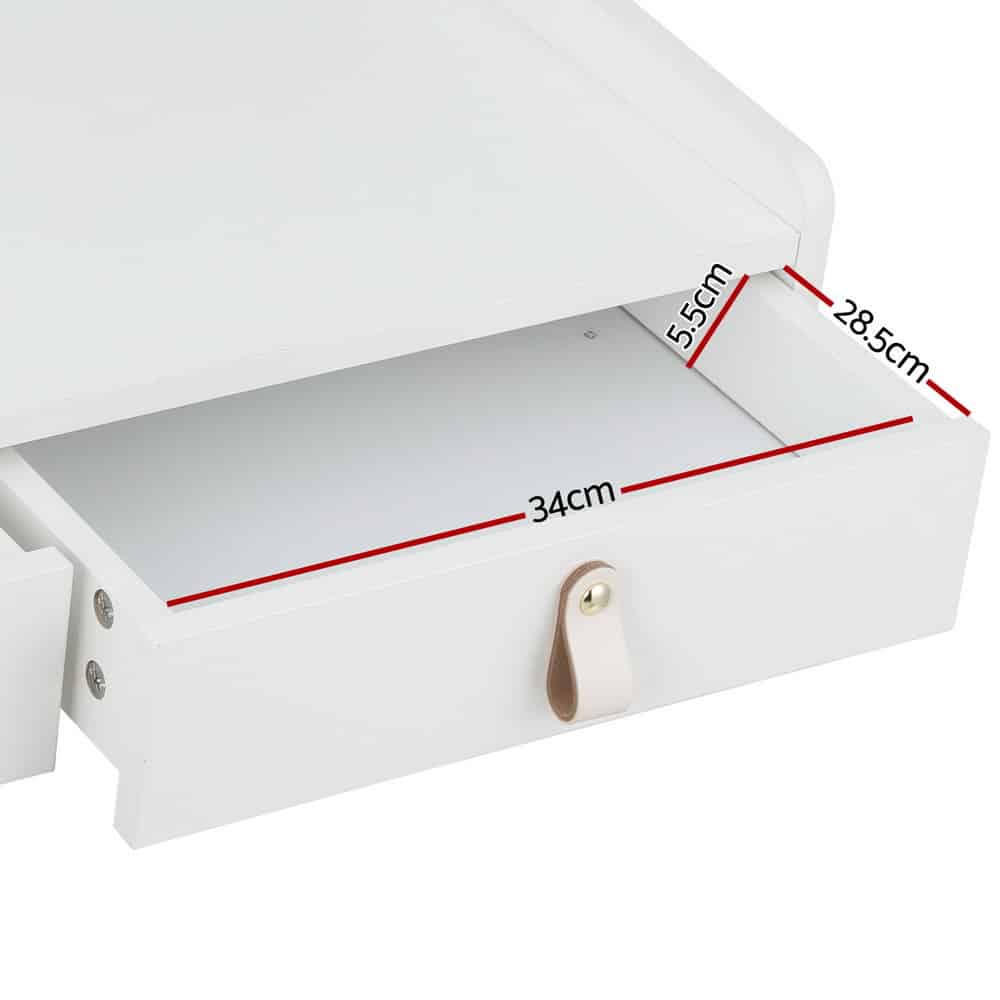 Make mornings simple with the Dressing Table. Crafted from 15mm thick particle board and designed for long-lasting use, the wall-mounted vanity with a cloud-shaped mirror exudes elegance and a sense of ethereal beauty. The mirror comes equipped with an LED strip that features warm, neutral and daylight white colours so you can look great under any light. With the convenience of a USB cable, you can effortlessly charge your devices while indulging in your beauty routine. Designed with practicality in mind, this vanity table boasts two spacious storage drawers, providing ample space to organise your essentials. The anti-rust drawer runners ensure smooth and seamless operation, guaranteeing a hassle-free experience. Emphasising ease and convenience, this floating vanity table is not only easy to maintain and clean but also a breeze to assemble. With its sleek design and luxurious features, it is the perfect embodiment of opulence and functionality. Elevate your space with this remarkable piece and indulge in the ultimate luxury of the Dressing Table. Features Specifications: Package Content This product comes with 1 year warranty 16 77 43 838496 Delivery Sometimes if the delivery driver does not feel there is a safe location to leave the parcel unattended, they may leave a collection card and return it to the local depot, please be advised this is at the discretion of the driver. In this case, please contact the courier directly to make re-delivery or collection arrangements. Multiple shipments Delivery Time Estimates Enter your postcode in the shipping calculator provided or at the cart page to see estimated delivery timeframes. These are a date range based on the current information the carriers have available for delivery to your area. We find in the majority of the cases your product will be delivered on, or even before, these timeframes. 14 Day Return Policy We at Complete Storage Solutions would like for you to be happy with your purchase with us. If you do change your mind or are not satisfied with the product, we can arrange for a return of your item if you contact us within 14 days of the delivery arrival. You will be responsible for the applicable shipping costs to facilitate the return, including the original shipping costs of sending the item to you and the cost of returning the item back to the warehouse. The item will be need to be returned in its new condition and securely packaged in the original packaging of the item. We may request a photo of the item in its packaging prior to arranging the return booking. We will offer the choice of:- To ensure appropriate tracking of the returned goods, all returns are to be arranged through Complete Storage Solutions. We accept no responsibility for items that are returned to us outside of being organised by us. We reserve the right to refuse returned items if the items do not comply with our returns policy. Any items we have refused will be posted back to you and additional postage will be charged to you. Faulty, Damaged, Missing Parts or Incorrect Item Received All customers need to check all of their packages ideally within 7 days of delivery arrival to ensure the product has arrived in satisfactory condition, undamaged and with all its parts. If there is any issues with the delivery we must be made aware within 14 days of delivery arrival at the latest by contacting us and reporting the problem via our contact us page. There is also an option to choose “Report a problem” here, please provide as much detail as possible and include photos or a short video of the issues to assist in a quick resolution. As some file types may not upload there, you can also email us with all the needed information at [email protected] More information is available on our Terms & Conditions and Shipping & Returns Pages WARNING: