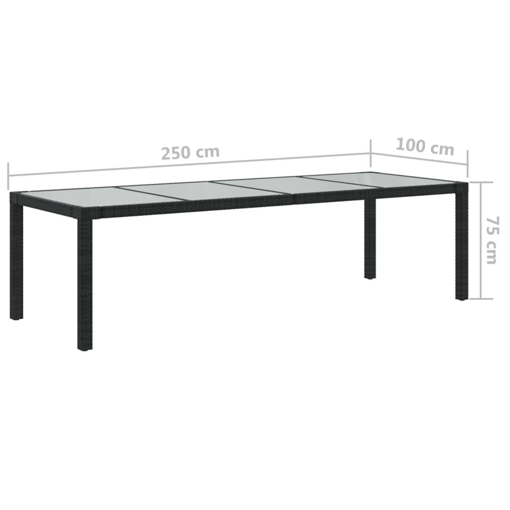 Tempered Glass and Poly Rattan Garden Table 250x100x75cm